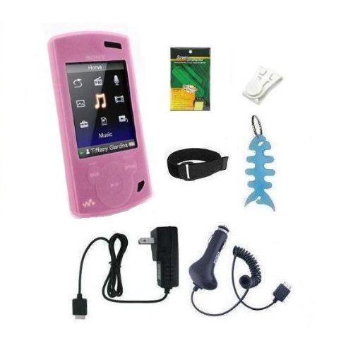 7 Pieces Accessory Combo for Sony Walkman S Series Video MP3 Player (NWZ S540, NWZ S544 and NWZ S545): Includes (Pink) Silicone Skin Case Cover, Wall Charger, Car Charger, Armband, Belt Clip, LCD Screen Protector and Fishbone Style Keychain Reviews